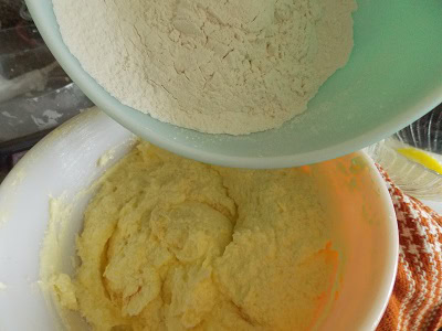 - Mélanger la farine et la levure (ou baking powder) avec une pincée de sel et la vanille (zeste d'orange pour moi).