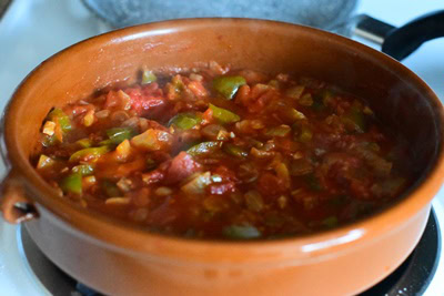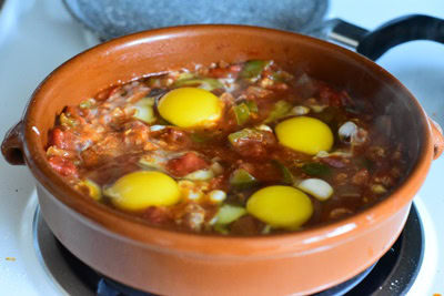 Ce plat existe aussi en Algérie, au Maroc et en Tunisie, que nous appelons chakchouka aux oeufs. Il est préparé pratiquement de la même façon, sauf que les poivrons sont grillés.