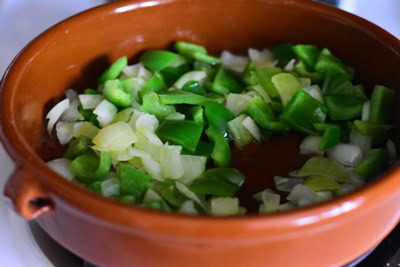 Ajoutez le poivron vert coupée en petits morceaux. Faites revenir jusqu’à ce qu’il soit tendre.