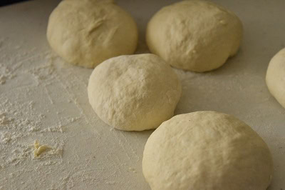 - Dégazer la pâte à naan. Fariner un plan de travail et diviser la pâte en plusieurs boules. Couvrir et laisser reposer quelques minutes (20 minutes).