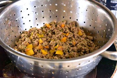- Saupoudrer de coriandre ainsi que de piment vert haché (optionnel). Égoutter la viande hachée et laisser refroidir.