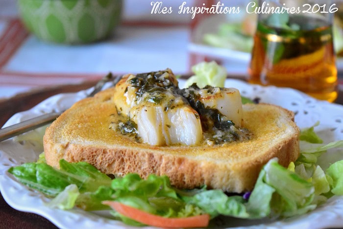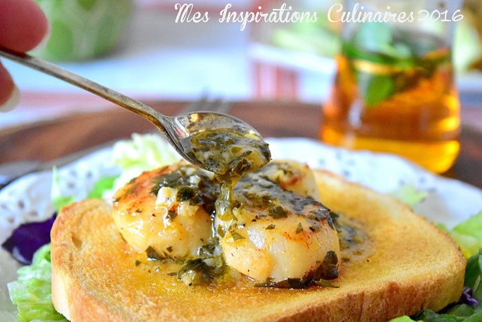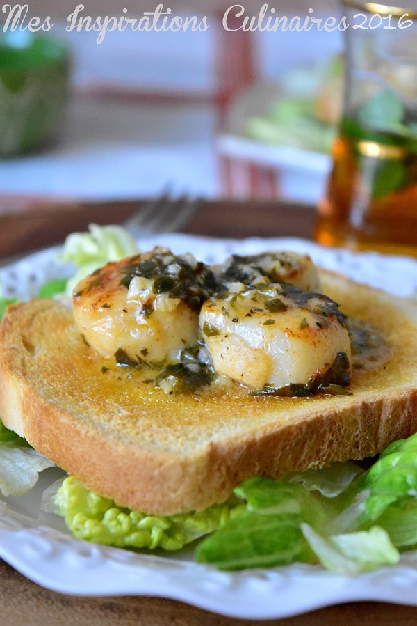 Il me restait quelques noix de saint jacques et je me suis souvenue de cette délicieuse recette à base de sauce au citron ail et persil que nous avons dégusté accompagnées sur du pain grille un vrai délice. Si vous préférez vous pouvez ajouter de la crème liquide en fin de cuisson pour plus de sauce et les déguster avec des spaghetti.