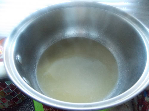 - Verser dans une casserole l'eau, le sucre vanille, le sel et le beurre. Porter a ébullition.