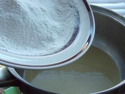 - Retirer la casserole du feu et jeter la farine d'un seul coup. Bien mélanger pour obtenir une pâte bien épaisse