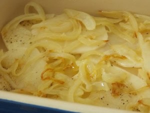 - Ajoutez une couche d’oignons sur les pommes de terre.