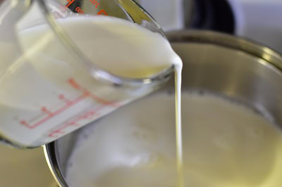 Cuire lentement sur feu doux en remuant souvent à la spatule en bois jusqu’à absorption du lait aux trois quarts.