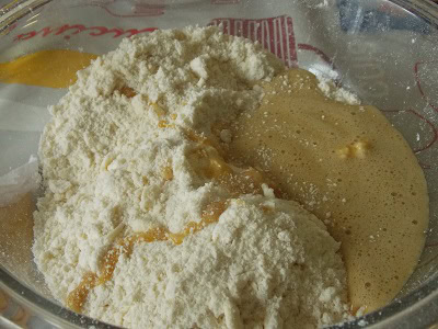 - Dans un second saladier, mélanger la farine à la levure.