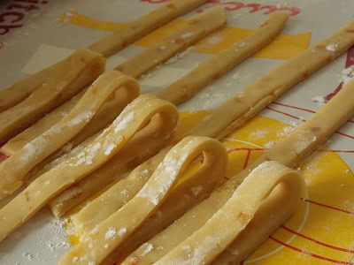 Placer au frais un petit moment tout en préchauffant le four à 180 C (350 F). Entre temps refaire la même procédure avec les rechutes de pâte.