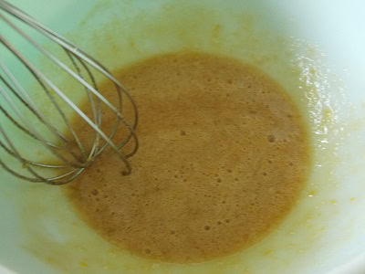 - Mélanger la cassonade à l'oeuf et la fleur d'oranger au fouet.