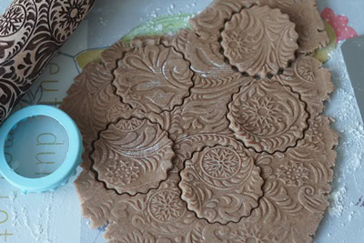 Pour cette recette, utilisez idéalement un tampon. Mais un emporte-pièce fera aussi l’affaire. J’ai choisi un rouleau à pâtisserie en bois à motif que j’ai trouvé joli.