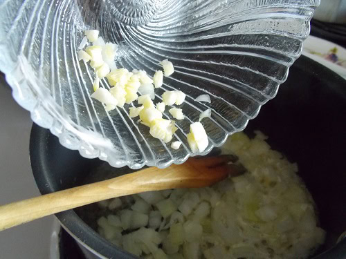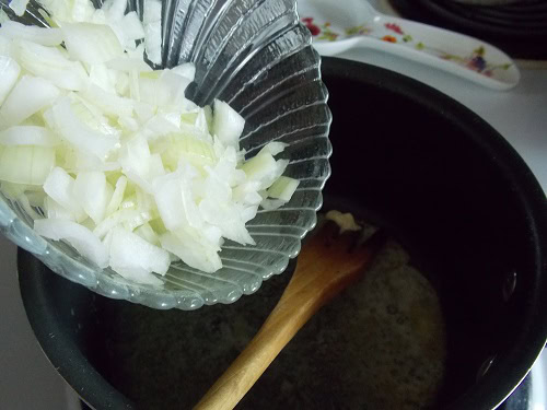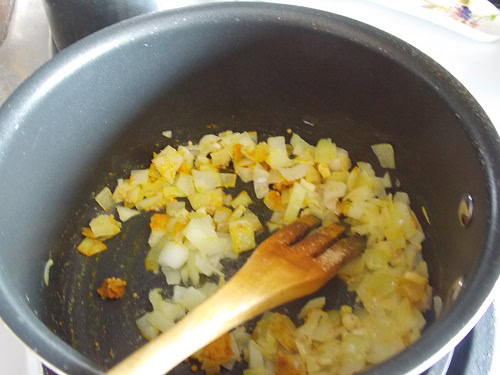- Remuer et laisser cuire quelques minutes ou jusqu’à ce que l'oignon soit translucide.