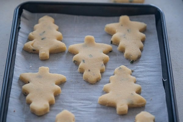 C’est la méthode la plus simple. Mais si, comme moi, vous préférez utiliser un emporte-pièce, étalez la pâte, découpez vos petites formes, puis glissez-les au réfrigérateur une bonne douzaine de minutes avant la cuisson.