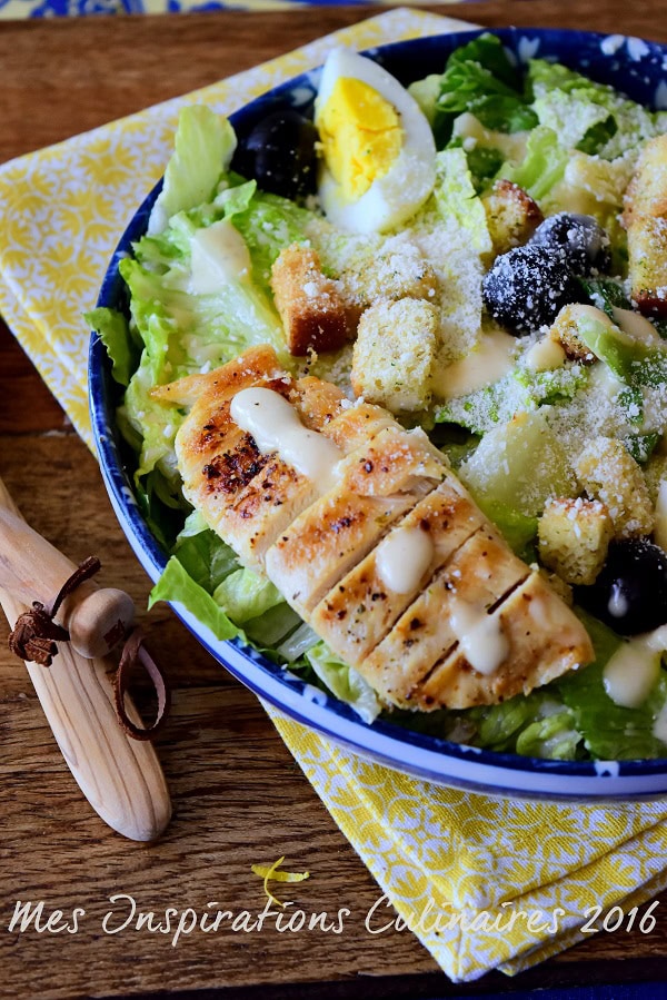 Vous trouverez différentes variantes de cette salade César, auxquelles on y ajoute des tomates, de l’avocat, du poulet grillé (comme le cas pour ma recette) des crevettes… Une recette classée dans le répertoire de recettes rapides du menu d’été.