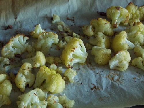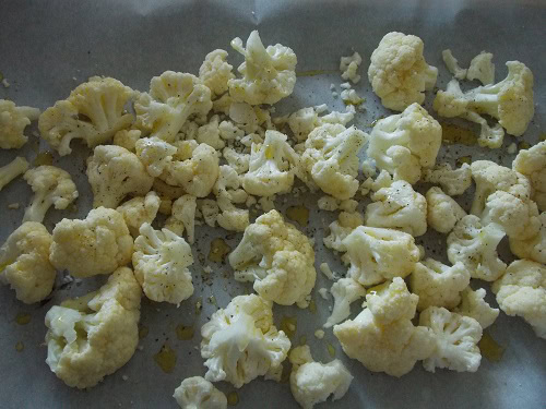 3. Préchauffer le four à 450 F (250 C) et rôtir les bouquets de chou fleur durant 15 min en les secouant de temps en temps.