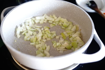 Ajouter l’oignon et faire revenir 4 minutes. Ajouter l’ail et faire revenir 3 minutes.