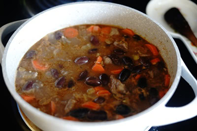- Couvrir la marmite et cuire environ 2h30 ou jusqu’à ce que la viande soit tendre et fondante.Vérifier le niveau d'eau.