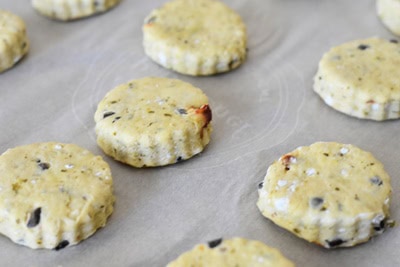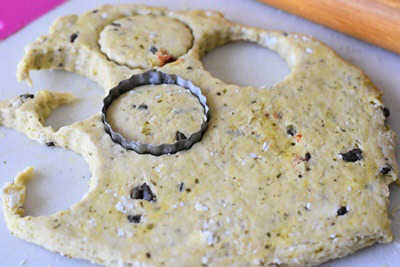 Pour changer de la version sucrée de scone aux fruits et de la forme traditionnelle triangulaire, je vous les scones sous forme de petits biscuits salés.