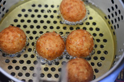 - Façonner des boulettes et frire dans de l'huile chaude. Égoutter et réserver.