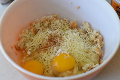 - Essorer et placer dans un saladier, ajouter le reste des ingrédients (fromage, sel, poivre, cannelle, oeuf, levure ). Placer au réfrigérateur durant 15 minutes environ afin de faciliter le façonnage des boulettes.