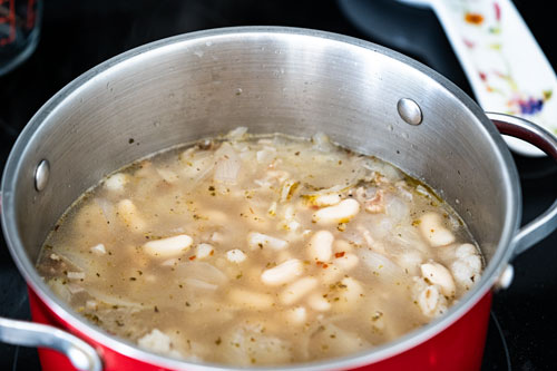 Les haricots blancs sont des épaississants supplémentaires de cette soupe, lui donnant une texture onctueuse et crémeuse sans trop de calories ajoutées.