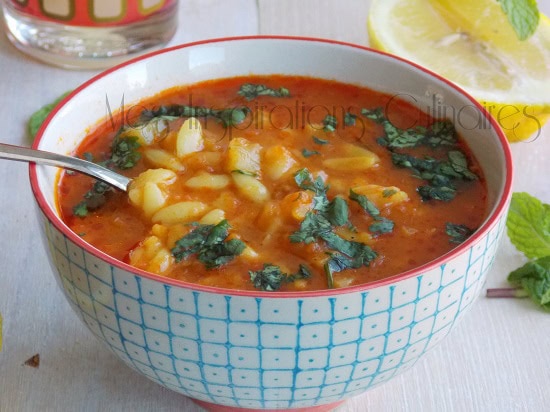 Cette soupe de vermicelles aux tomates est si simple, consistante avec de belles saveurs. Les vermicelles sont couramment utilisées dans la cuisine algérienne, mais aussi dans la cuisine du moyen-orient. Elles permettent d’épaissir les soupes en apportant de la texture.