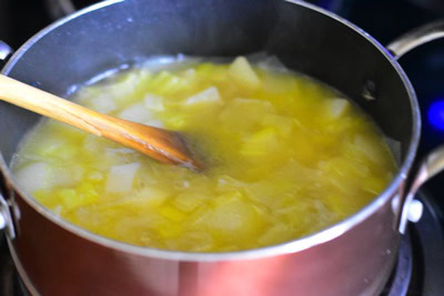 - Couvrir puis diminuer le feu et cuire à feu doux pendant 20 à 25 minutes ou jusqu’à ce que les légumes soient tendres.