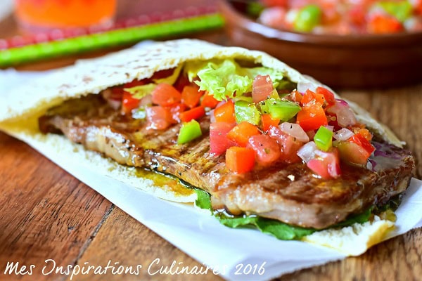 du vert dans les assiettes et une recette qui doit se manger avec les doigts une sorte de Street food. J’ai donc opté pour ce sandwich steak grille à la salsa Criolla.