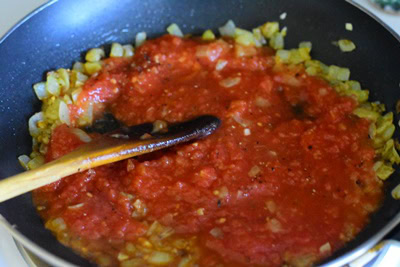 - Incorporer les tomates et le bouillon de poulet. Saler et porter à ébullition, réduire le feu et laisser cuire environ 10 minutes.