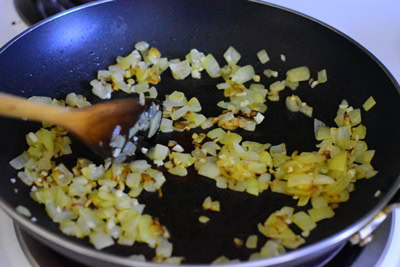 - Ajouter l'oignon et faire revenir environ 5 minutes jusqu’à ce qu'il soit translucide en remuant.