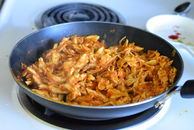 Le poulet Tinga est souvent servi sur des Tostadas, une sorte de tortilla au maïs frite. Je n’avais que des tortilla en forme de bateau. Mes filles d’ailleurs les préfèrent.
