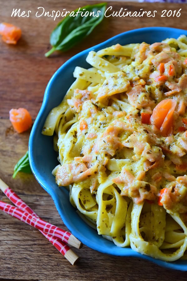 Dommage j’avais du saumon et ton frère voulait une quiche j’adore les pâtes au saumon fumé et pesto
