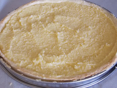 - Verser la pâte d'amande sur le fond de tarte. Remettre à cuire pour environ 20-25 minutes tout dépend de la chaleur du four. (Il faut obtenir une surface dorée et une pâte bien cuite prolonger la cuisson s'il le faut).