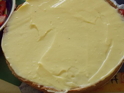 - Laisser refroidir complètement la tarte avant d’étaler la crème pâtissière après l'avoir fouettée afin de la rendre lisse.