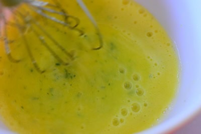 - Dans un saladier fouetter le sucre restant ainsi que les oeufs. Ajouter le jus de citron vert et le zeste d'un citron, ainsi que le mélange sucre-menthe mixé.