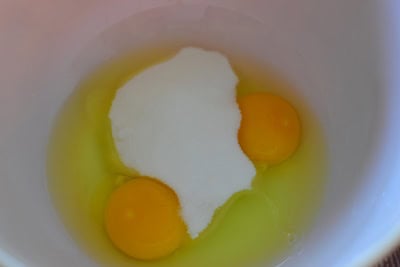 - Blanchir les jaunes d'oeuf avec le sucre, le yaourt, l'huile jusqu’à obtenir une texture crémeuse.