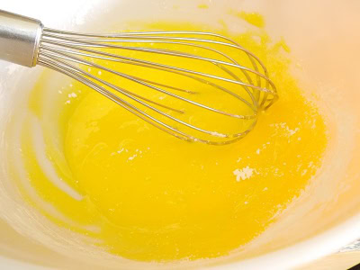 - Verser la moitie du lait chaud sur les jaunes d'oeufs tout en mélangeant avec un fouet. Transverser le tout dans la casserole.