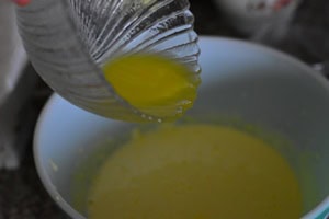 Incorporer le beurre fondu, jus et zeste de citron.