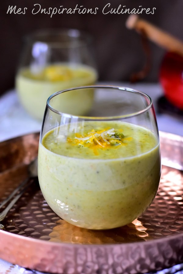 Je vous avais deja proposé une soupe de pommes de terre et brocolis que je prepare souvent car j’adore les les plats légers le soir, mais ce velouté de brocolis est tout aussi bon, consistant je ne vous le cache pas donc à servir dans de petits bols ou comme moi dans des verres à soupe. Je rajoute à mon velouté de la carotte c’est un must ne retirez surtout pas ce légume il apporte une petite touche sucrée mais pas très prononcée.